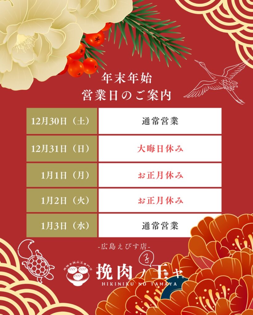 | 12月31日(日) | 大晦日お休み |